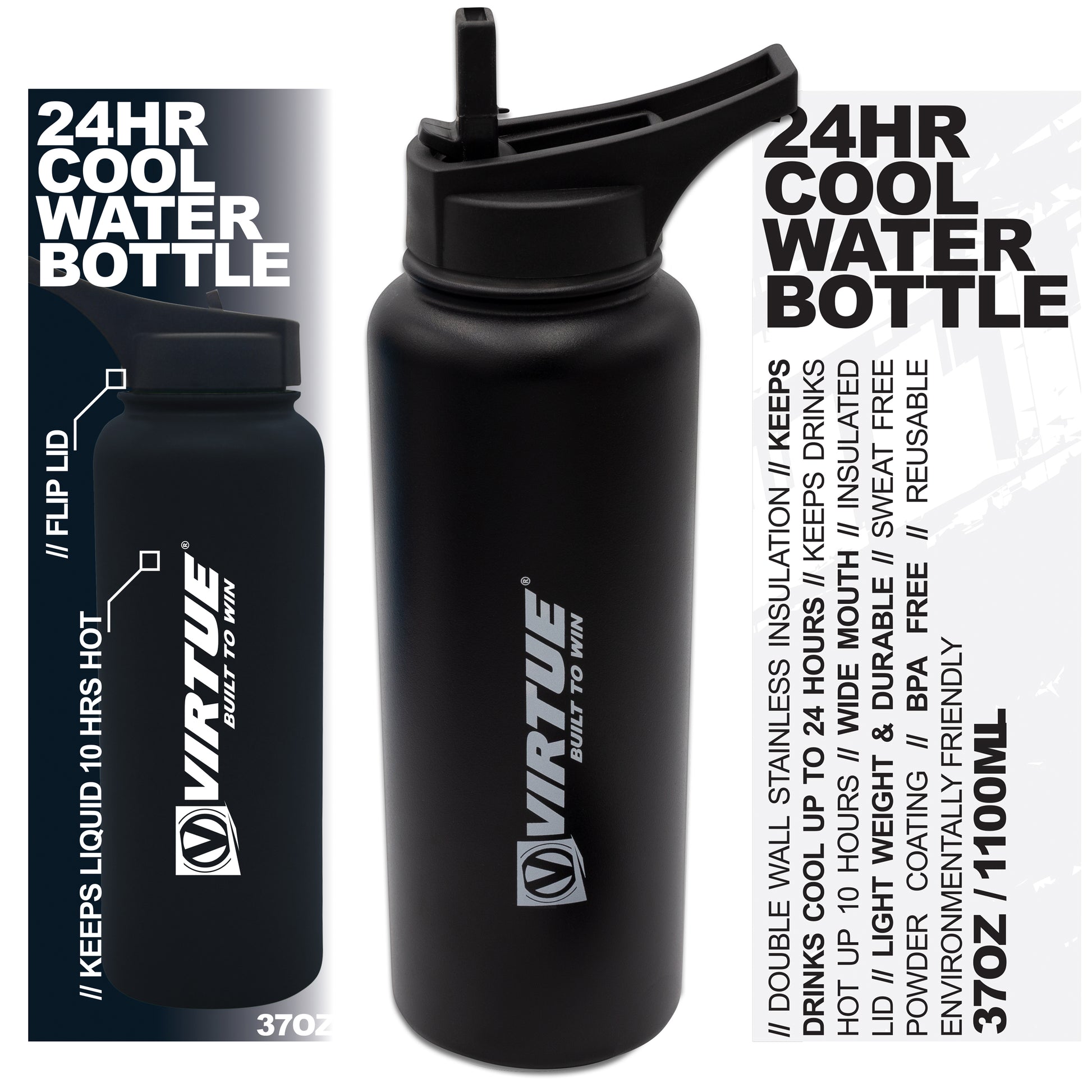Virtue Stainless Steel 24Hr Cool Water Bottle - 37oz - Black